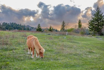 Free-roaming ponies graze throughout the park’s open areas. They are commonly seen near Massie Gap and the highland balds.