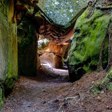 The Virginia Channels are a rare natural maze of sandstone channels and slots carved into the top of Brumley Mountain in Russell County, southwest Virginia. They look almost like city streets or stone corridors—hence the name “Channels.”
